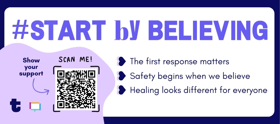 The Start by Believing campaign is a global movement originally developed by End Violence Against Women International (EVAWI) to change how communities respond to disclosures of harm.